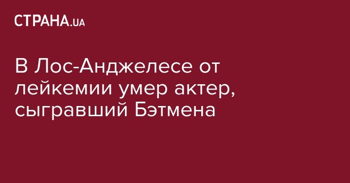 В Лос-Анджелесе от лейкемии умер актер, сыгравший Бэтмена