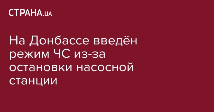 На Донбассе введён режим ЧС из-за остановки насосной станции