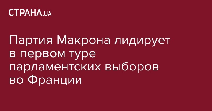 Партия президента Франции Эммануэля Макрона "Республика, вперед!" уверенно лидирует в первом туре выборов в Национальное собрание Франции (нижнюю палату парламента). Об этом свидетельствуют данные exit-poll, проведенного социологической компанией Ipsos.