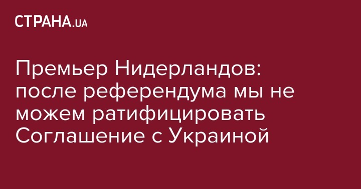 Нидерланды не могут продолжить ратификацию Соглашения об ассоциации между Украиной и ЕС в условиях, когда большинство нидерландцев проголосовало против данного Соглашения. Как передает "Интерфакс-Украина" об этом заявил премьер-министр Нидерландов Марк Рютте.