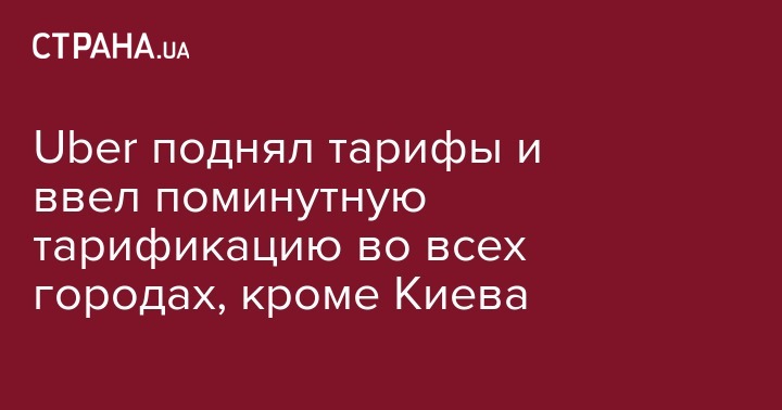 С 9 июня сервис вызова такси Uber поднял тарифы и ввел поминутную тарификацию во всех городах Украины. На прежнем уровне цены остались только в Киеве. Об этом сообщает Ain.ua.