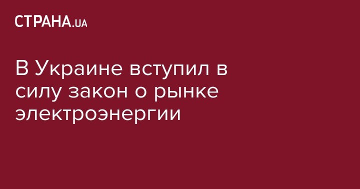 Закон "О рынке электрической энергии" вступил в силу с воскресенья, 11 июня после официального обнародования его в газете "Урядовый курьер". Об этом пишет "Инерфакс-Украина".