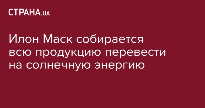 Знаменитый американский бизнесмен и основатель компании Tesla Motors и SPACEX Илон Маск намерен перевести свою продукцию на энергию солнца. Об этом он сообщил в своем Twitter.