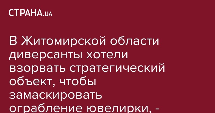 В Житомирской области диверсанты хотели взорвать стратегический объект, чтобы замаскировать ограбление ювелирки, - СБУ