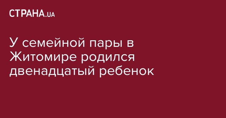 Сегодня из Житомирского перинатального центра выписали роженицу Анну Бодомер с младенцем, который у нее и ее мужа Богдана уже двенадцатый по счету. Об этом пишет УНИАН, ссылаясь на пресс-службу Житомирского городского совета.