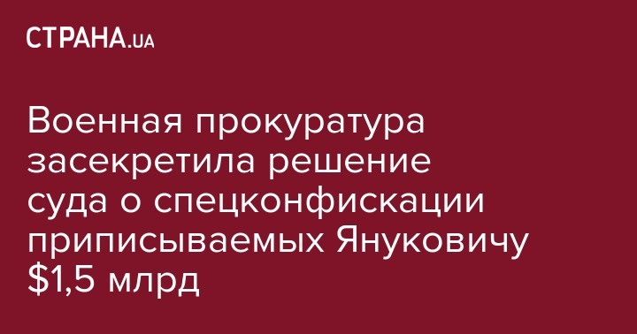 Военная прокуратура засекретила решение суда о спецконфискации приписываемых Януковичу $1,5 млрд
