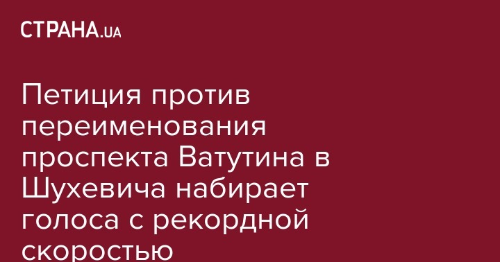 Петиция против переименования проспекта Ватутина в Киеве в проспект Шухевича набрала более половины необходимых голосов за 11 дней. Об этом свидетельствуют данные на портале электронных петиций Киевского горсовета.