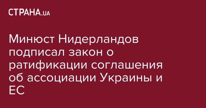 Минюст Нидерландов подписал закон о ратификации соглашения об ассоциации Украины и ЕС