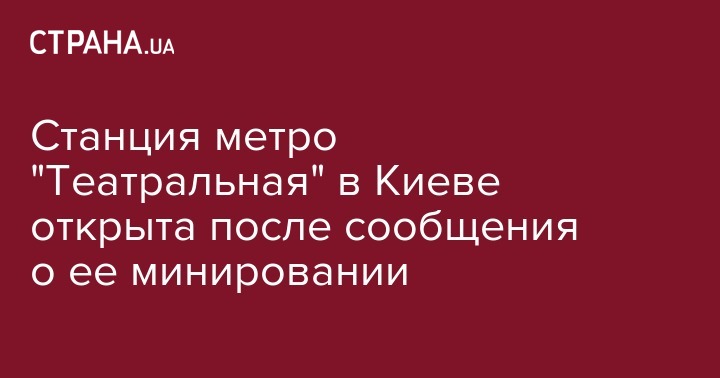 Станция метро "Театральная" в Киеве открыта после сообщения о ее минировании