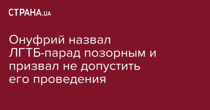 Предстоятель Украинской православной церкви Блаженнейший Митрополит Онуфрий призвал власти не допустить проведения "так называемых гей-парадов" в столице Украины.
