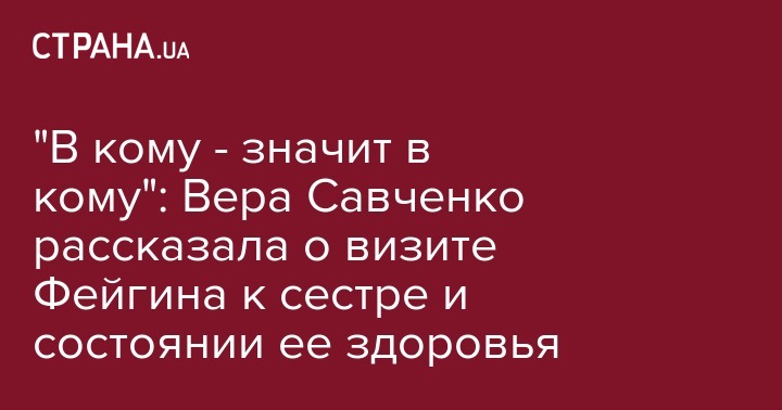 "Он (Фейгин, - ред.) зашел, но ему никаких анализов не показали, результатов, ничего. Он сказал, что Надя мерзнет, кутается в одеяло, но держится", - сообщил Вера.