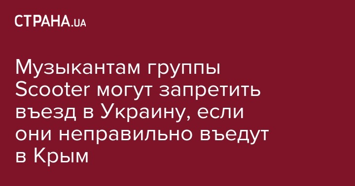 Немецкой группе Scooter запретят легально посещать Украину, если музыканты въедут на Крымский полуостров через территорию России.