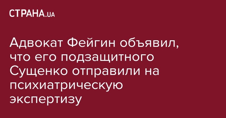 Украинскому журналисту Роману Сущенко, арестованному в России, назначили психолого-психиатрическую экспертизу. Об этом сообщил его адвокат Марк Фейгин в Facebook.
