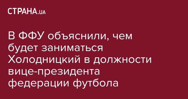 Также отмечается, что назначение Холодницкого первым вице-президентом ФФУ согласовано с УЕФА и ФИФА.