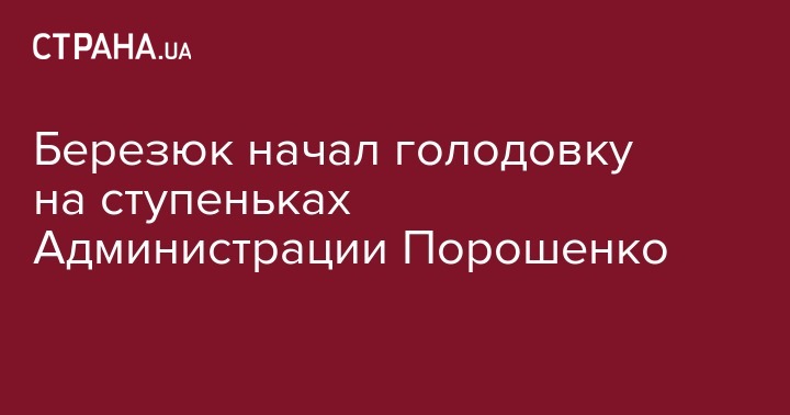 Лидер парламентской фракции "Самопомощь" Олег Березюк начал голодовку, сидя на ступеньках у входа в Администрацию президента на улице Банковой, 11. Об этом в Facebook написал его коллега по фракции народный депутат Роман Семенуха.