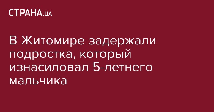 В субботу, 17 июня, в Житомире полиция арестовала 17-летнего злоумышленника, который насиловал 5-летнего мальчика. Об этом пресс-служба Нацполиции сообщила только в понедельник, 19 июня.