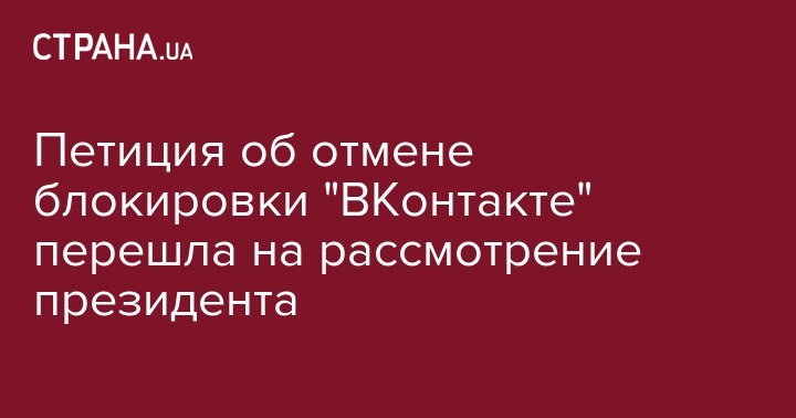 Как сообщала "Страна", 14 июня, петиция об отмене запрета "ВКонтакте" набрала более 25 тыс. подписей, необходимых для рассмотрения главой государства.