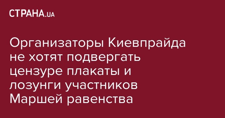Организаторы "Марша равенства за права ЛГБТ" не намерены цензурировать плакаты и лозунги участников акции. Об этом на брифинге сообщил член правления общественной организации "КиевПрайд" Зорян Кись, передают "Украинские новости".