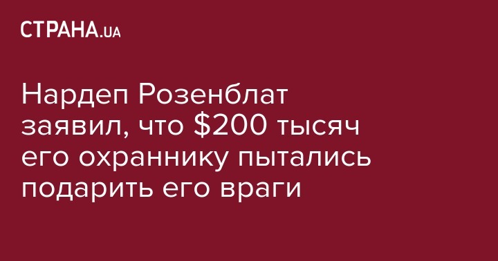 Нардеп Розенблат заявил, что $200 тысяч его охраннику пытались подарить его враги