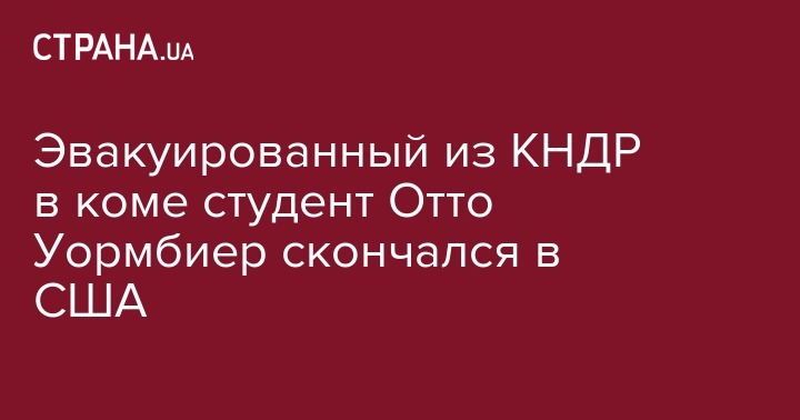 Эвакуированный из КНДР в коме студент Отто Уормбиер скончался в США
