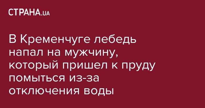 В Кременчуге лебедь напал на мужчину, который пришел к пруду помыться из-за отключения воды
