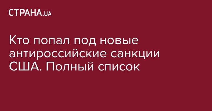 "Страна" приводит полный список лиц и компаний, в отношении которых введены новые американские санкции.