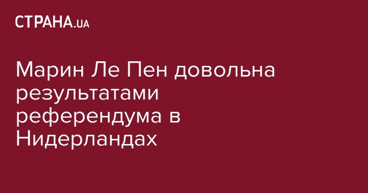 Лидер французской ультраправой партии "Национальный фронт" Марин Ле Пен довольна результатами референдума в Нидерландах по вопросу об ассоциации Евросоюза и Украины, по итогам которого победили противники такого союза. Об этом она написала в Twitter.