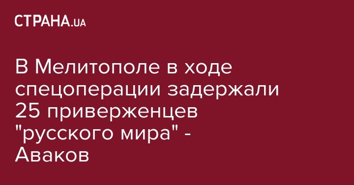 Глава МВД Арсен Аваков сообщил о спецоперации, в ходе которой в Мелитополе задержали 25 представителей криминалитета и приверженцев "русского мира". Об этом он написал в Facebook.