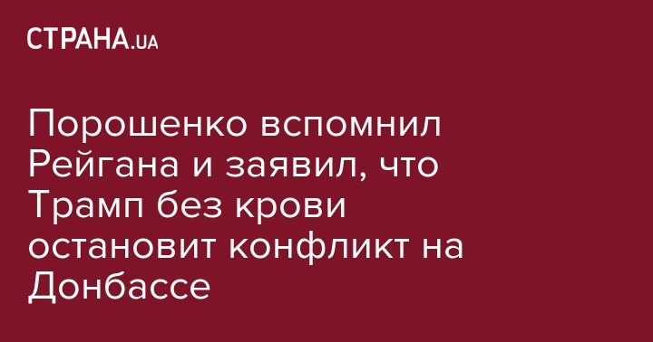 Порошенко напомнил, что Рейган завершил "холодную войну" без единого взрыва. И заявил, что Трамп может принести мир в Украине в конфликте с Россией без пролития крови.