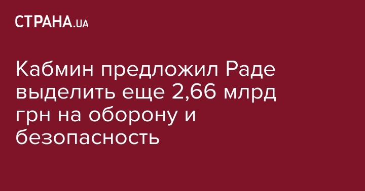 Кабинет министров Украины зарегистрировал в Верховной Раде Украины законопроект "О внесении изменений в государственный бюджет на 2017 год", которым предлагает выделить дополнительно 2,66 млрд грн на финансирование обороны и безопасности.