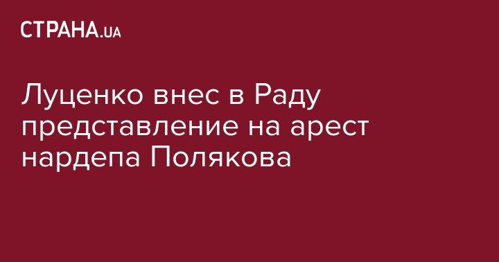 Представление о предоставлении согласия на привлечение к уголовной ответственности, задержание и арест народного депутата Максима Полякова внес сегодня Генеральный прокурор Украины Юрий Луценко в Верховную Раду. Об этом на своей странице в Facebook сообщила пресс-секретарь Генпрокурора Лариса Сарган.