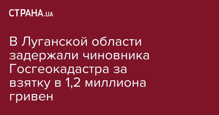 В Луганской области задержали чиновника Госгеокадастра за взятку в 1,2 миллиона гривен