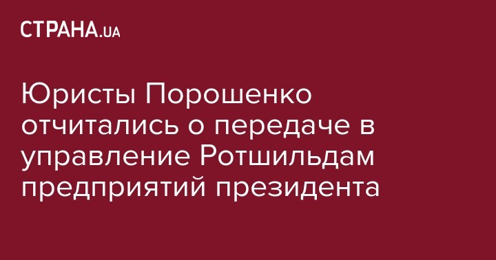 Юристы Порошенко отчитались о передаче в управление Ротшильдам предприятий президента