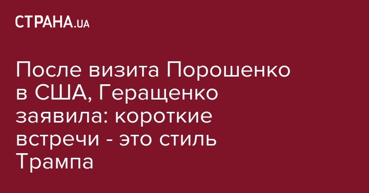 После визита Порошенко в США, Геращенко заявила: короткие встречи - это стиль Трампа