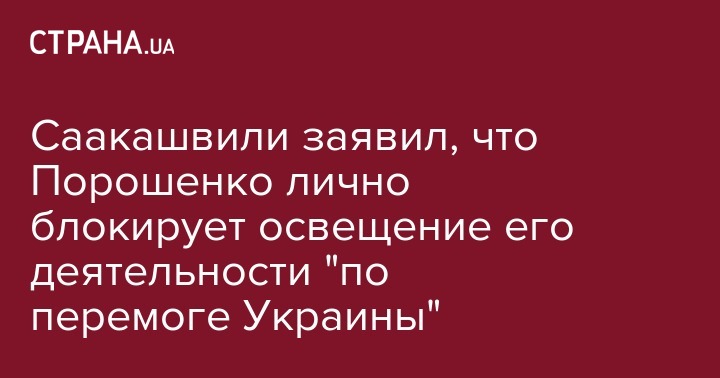 Экс-глава Одесской облгосадминистрации и бывший президент Грузии Михаил Саакашвили обвинил Петра Порошенко в блокировании освещения своей программы и деятельности "по победе Украины" на всех главных украинских телеканалах. Об этом бывший грузино-украинский чиновник заявил на своей Facebook-странице.