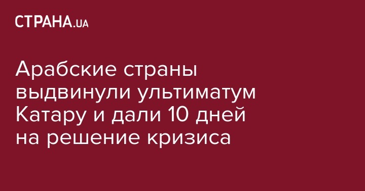 Несколько арабских стран выдвинули список из 13 требований, которые предлагают выполнить Катару в срок до 10 дней, чтобы урегулировать возникший кризис. Об этом сообщает Associated Press.