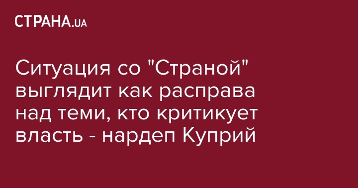 Ситуация со "Страной" выглядит как расправа над теми, кто критикует власть - нардеп Куприй