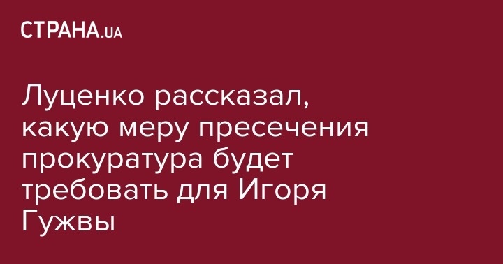 Генпрокурор Украины Юрий Луценко в ходе пресс-конференции 23 июня предположил, что прокуратура будет просить суд арестовать главного редактора "Страны" Игоря Гужву с возможностью внесения залога.