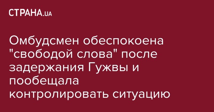 Уполномоченный Верховной Рады по правам человека Валерия Лутковская выражает обеспокоенность по поводу ситуации с задержанием главреда "Страны" Игоря Гужвы. Об этом сообщает в Facebook офис омбудсмена.