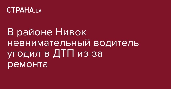 Между Берестейской и Нивками, где ведутся продолжительные ремонтные работы - срезана часть асфальта - водитель автомобиля Volkswagen поздно заметил знак о ремонтных работах.
