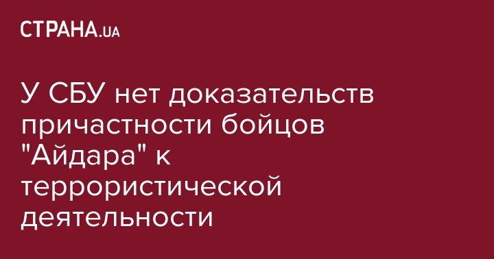 "Следователи Службы безопасности Украины в результате осуществленных мер не получили фактических данных, свидетельствующих о совершении военнослужащими батальона территориальной обороны "Айдар" уголовного преступления по ч. 1 ст. 258-3 (создание террористической организации) УК Украины", - говорится в сообщении.
