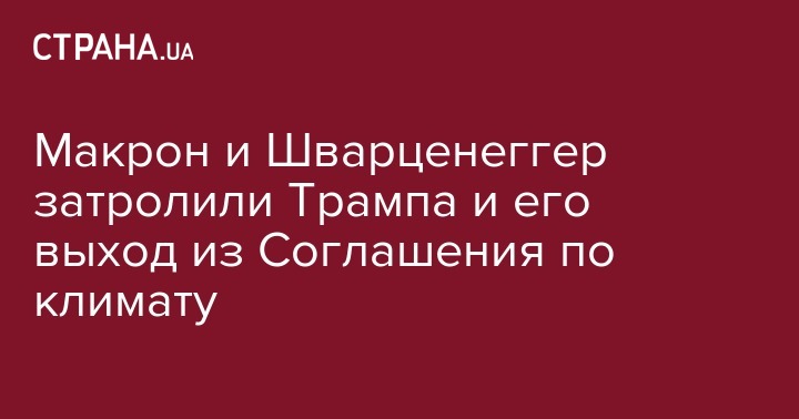Президент Франции Эммануэль Макрона и экс-губернатор Калифорнии Арнольд Шварценеггер потроллили отношение президента США Дональда Трампа к изменению климата. Видео опубликовал на своей странице в Facebook Шварценеггер.