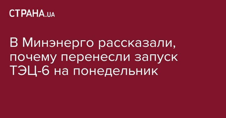 В Минэнерго рассказали, почему перенесли запуск ТЭЦ-6 на понедельник