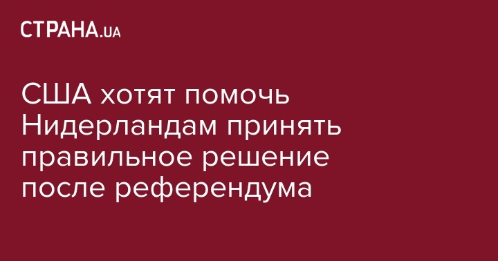 США хотят помочь Нидерландам принять правильное решение после референдума