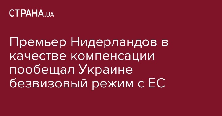 Премьер Нидерландов в качестве компенсации пообещал Украине безвизовый режим с ЕС