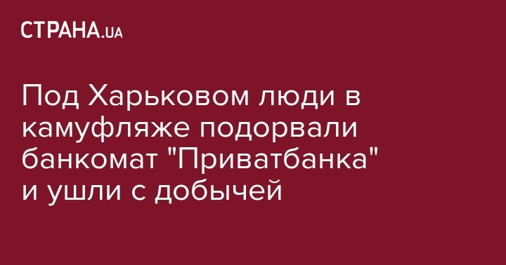 В поселке Высокий (Харьковская область) трое неизвестных в камуфляжной форме подорвали банкомат государственного "Приватбанка" и забрали из него деньги. Об этом сообщает пресс-служба местной полиции.