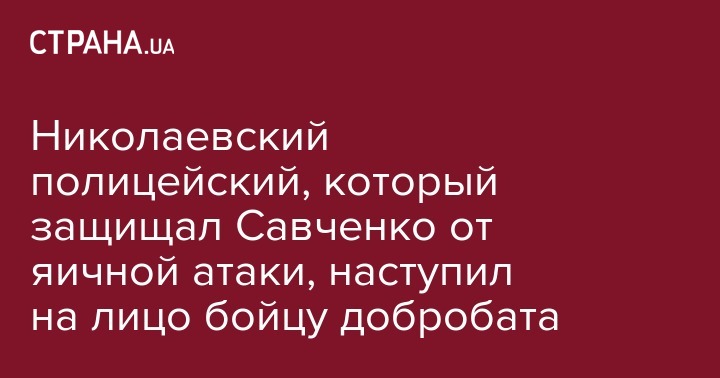Николаевский полицейский, который защищал Савченко от яичной атаки, наступил на лицо бойцу добробата