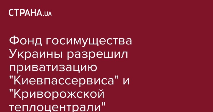 "Фонд государственного имущества включил в Перечень объектов групп В, Г, Е, которые подлежат продаже в 2017 году, ПАО "Криворожская теплоцентраль" и ПАО "Киевпассервис", - говорится в опубликованном сообщении ФГИУ.