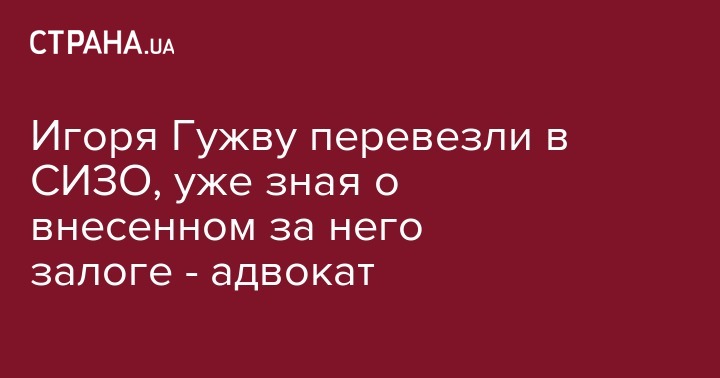 Главного редактора интернет-издания "Cтрана.ua" Игоря Гужвы перевезли в Лукъяновское СИЗО. При этом за него уже была внесена всю сумма определенного судом залога. Об этом на своей Facebook-странице сообщила адвокат журналиста, бывшая министр юстиции Украины Елена Лукаш.