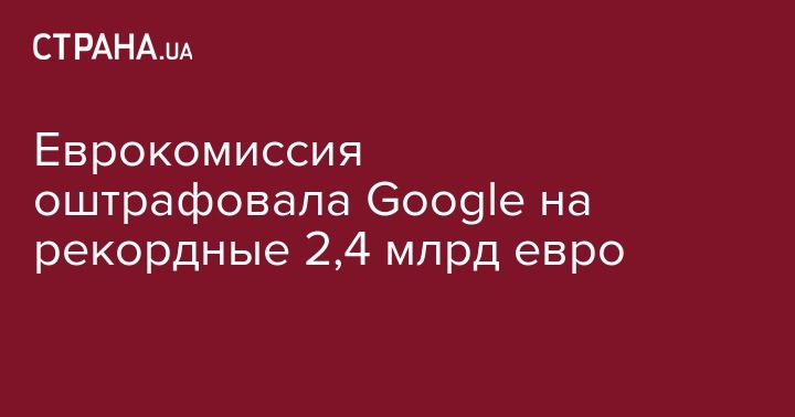 Европейская комиссия оштрафовала американскую компанию-гиганта Google на рекордные 2,4 млрд евро по обвинению в злоупотреблении компанией доминирующим положением на рынке при продвижении сервиса Google Shopping. Об этом сообщается на сайте ведомства.